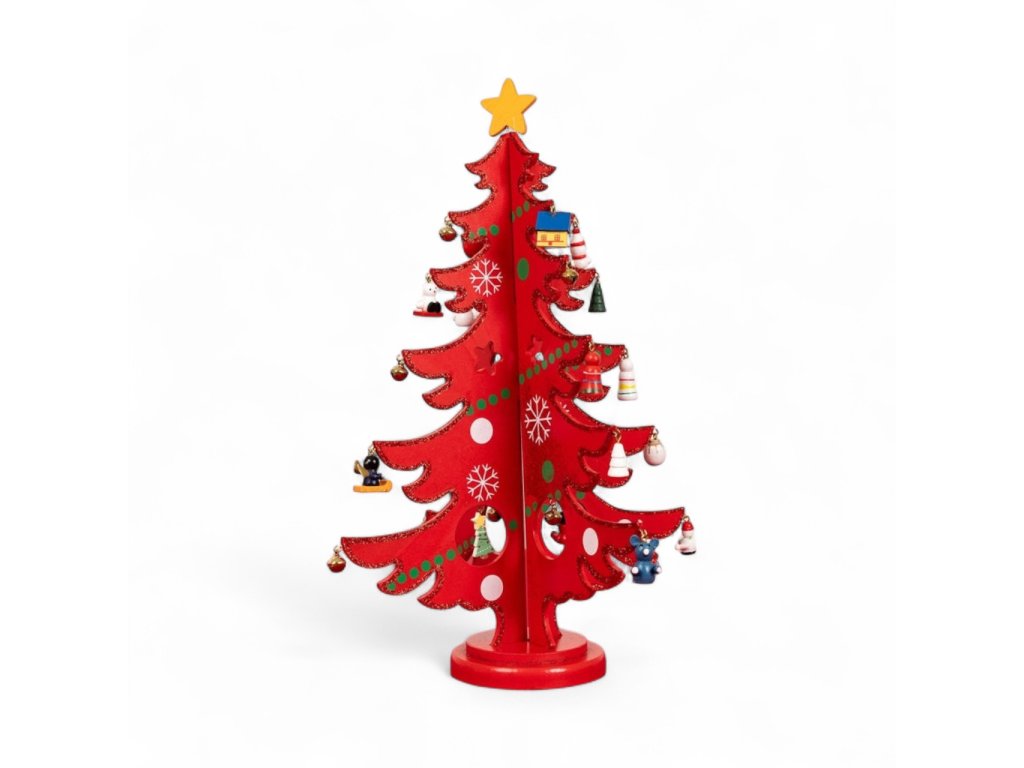 Dřevěný vánoční stromeček s figurkami (29 cm)