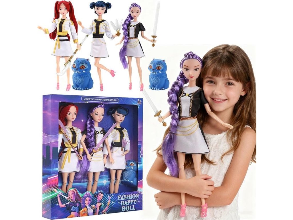 Spojení korejského hudebního stylu s fantastickým světem démonů – unikátní sběratelská sada „K-Pop: Demon Hunter“. Každá panenka má flexibilní spojení, která umožňují nastavení do různých póz – koncertních nebo bojových.