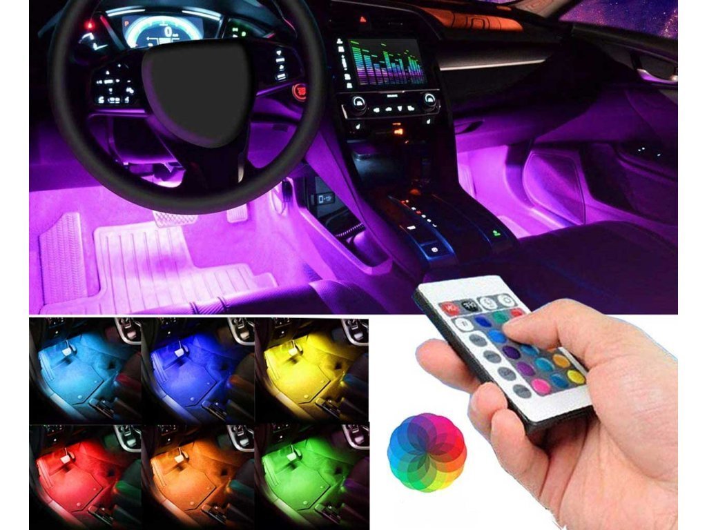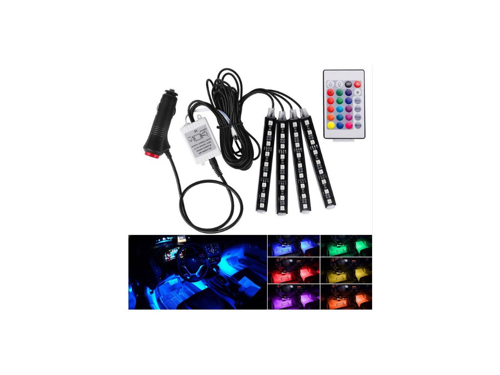 Barevné LED pásky “malé“ k osvětlení interiéru vozu. Nejen že vylepší design vašeho vozu, ale poslouží i jako praktické osvětlení když vám něco zapadne pod sedačku. Samozřejmostí je dálkové ovládání, se kterým si vyberete z nespočtu možných barevných kombinací. LED pásky se snadno instalují a napájí se přes kabel do autozapalování.