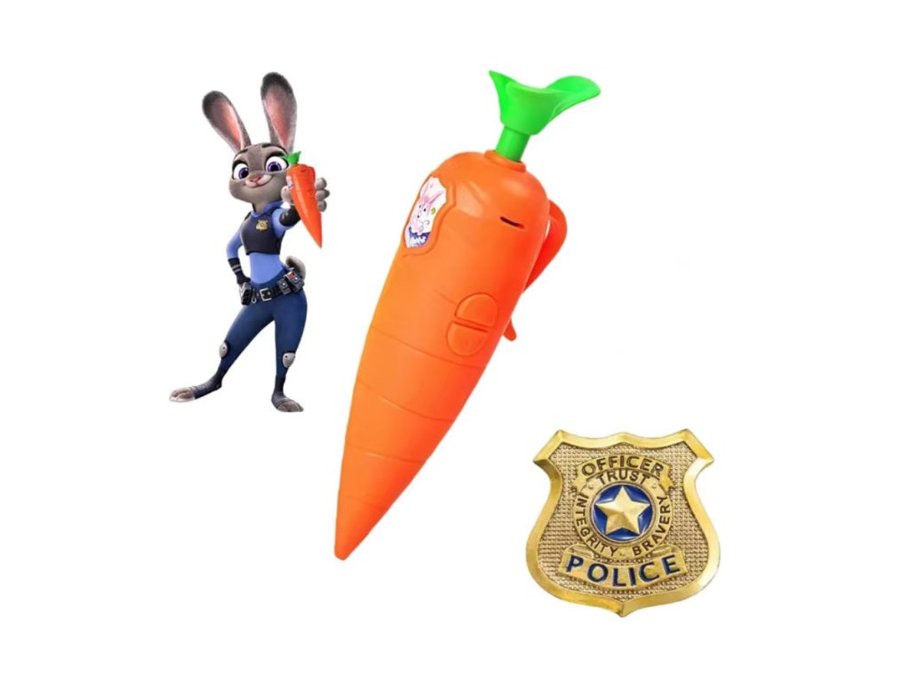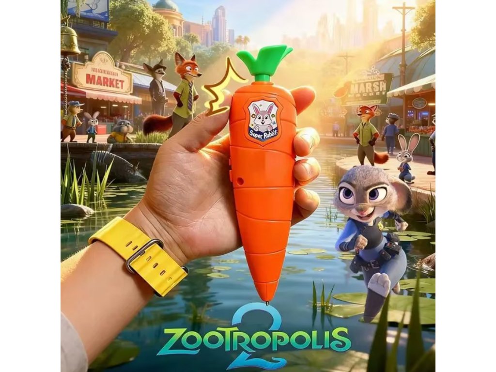 Dětská zvuková hračka ve tvaru mrkve s motivem Zootopia. Po stisknutí hraje úvodní song z této pohádky, který děti zabaví a podpoří hravou interakci. Výrazné barevné provedení a roztomilé zpracování dělají z hračky atraktivní drobný dárek pro malé fanoušky pohádkových postaviček. Vhodná jako malá odměna, doplněk do dětského balíčku nebo zábavná hračka na cesty.