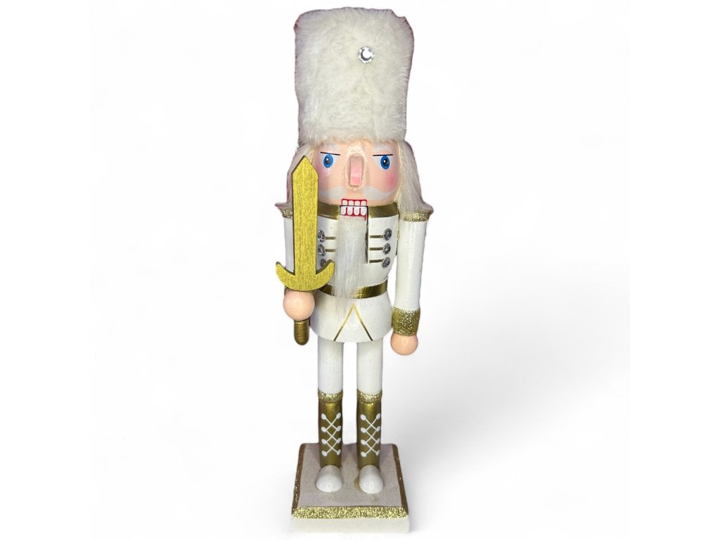 Vánoční dekorace louskáček - Bílo-zlatý s mečem (30 cm)