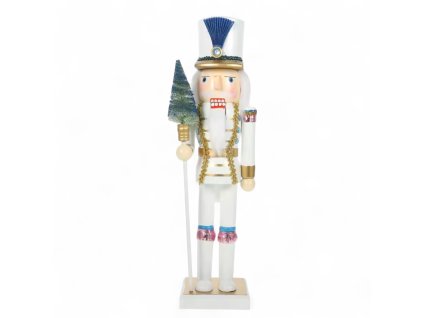 Vánoční dekorace louskáček - Modrý třpytivý s bubínkem (30 cm)