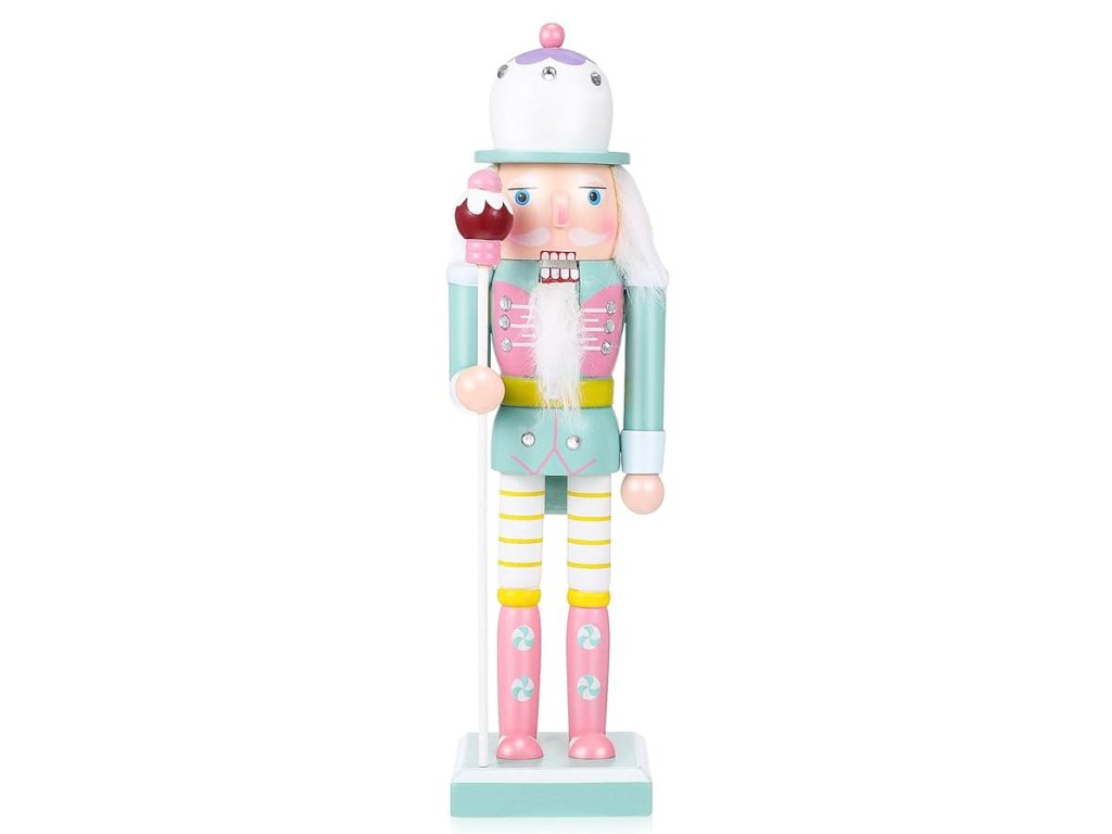 Vánoční dekorace louskáček - Tyrkysovo-růžový s holí (30 cm)