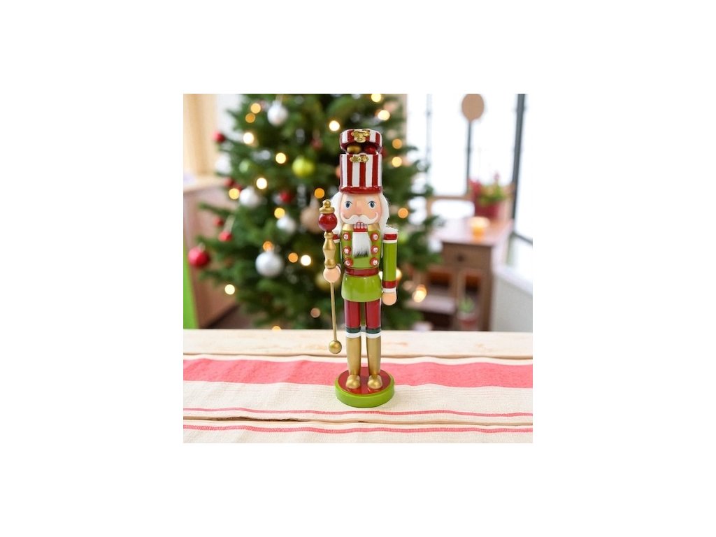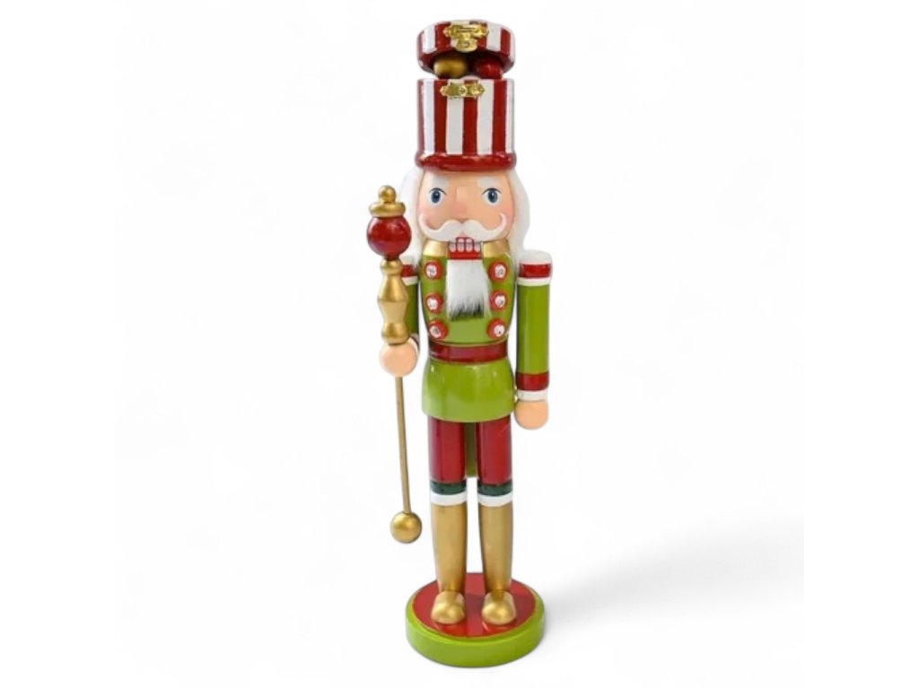 Vánoční dekorace louskáček - Zeleno-červený v klobouku (40 cm)