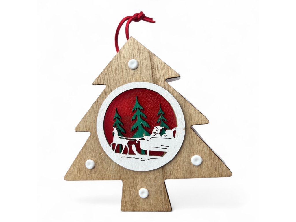 Vánoční dřevěná ozdoba s LED osvětlením - Stromek (Santa)