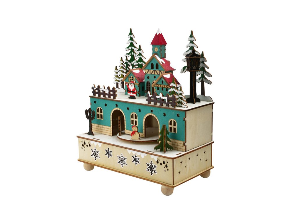 Dřevěná zimní hrací skříňka s figurkami je parádní vánoční dekorace se zvukovým doprovodem, která dodá vaší zahradě i dalším venkovním a vnitřním prostorům tu správnou sváteční atmosféru a popřeje všem vašim hostům šťastné a veselé.
