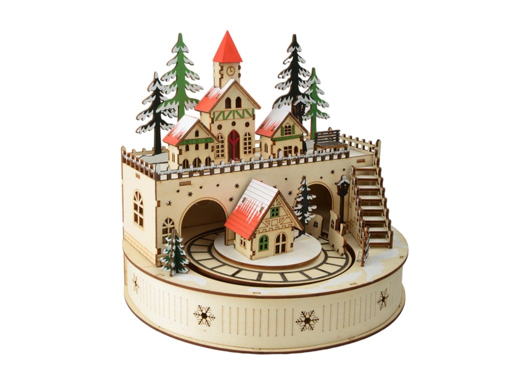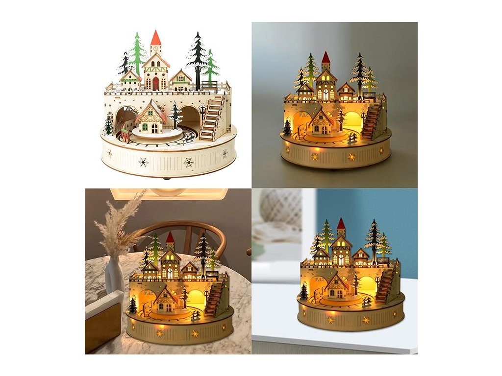 Tato vánoční hudební skříňka je vyrobena z kvalitního dřeva, které je odolné proti opotřebení a robustní, což umožňuje dlouhodobé a opakované používání.