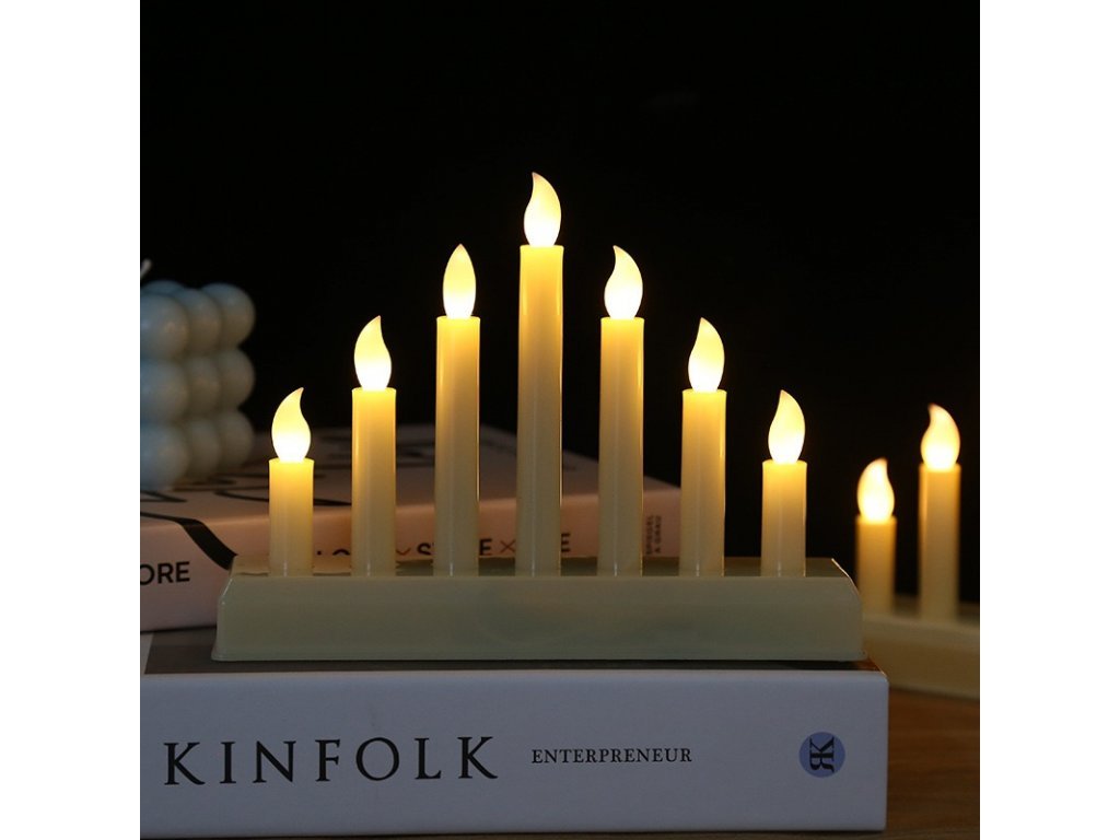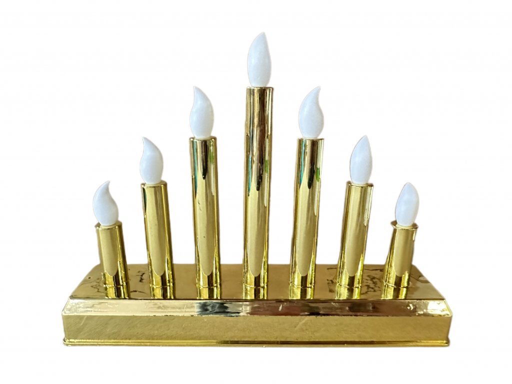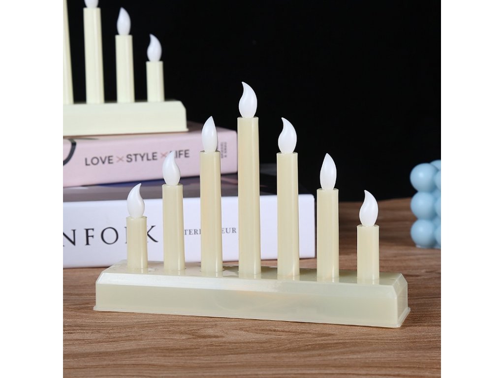 Mini vánoční plastový svícen s 7 svíčkami, které svítí teple bíle, vytváří útulnou vánoční atmosféru. Elegantní design a bezpečné plastové provedení zajišťují bezstarostnou výzdobu. Ideální pro stoly, okenní parapety a další vánoční dekorace.