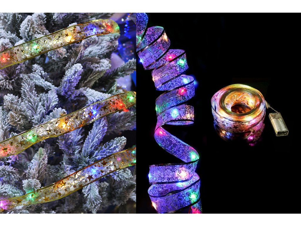 Vánoční stuha s LED světýlky - Barevná (10 led/100 cm)