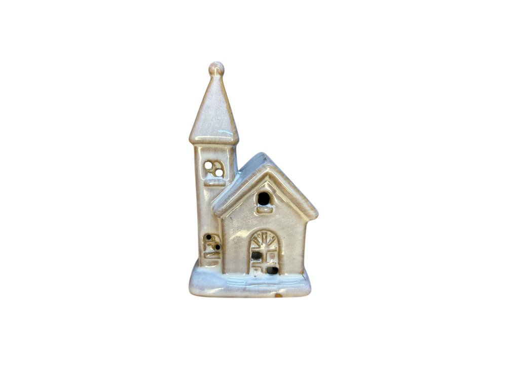 Vánoční svítící LED dekorace - Domeček s věží (15x6 cm)