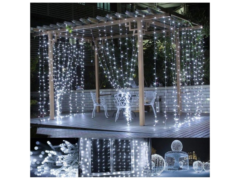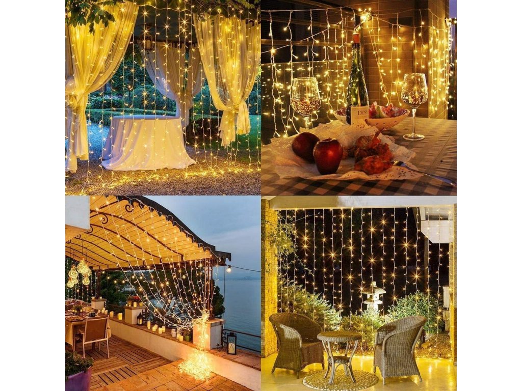 Světelný závěs se 480 LED světly je dlouhý 3x3 m. Toto osvětlení má univerzální použití, tedy nejen jako vánoční dekorace, ale i jako výzdoba při pořádání zahradních párty a večírků. Světelný řetěz je vhodný pro jak venkovní tak vnitřní použití.